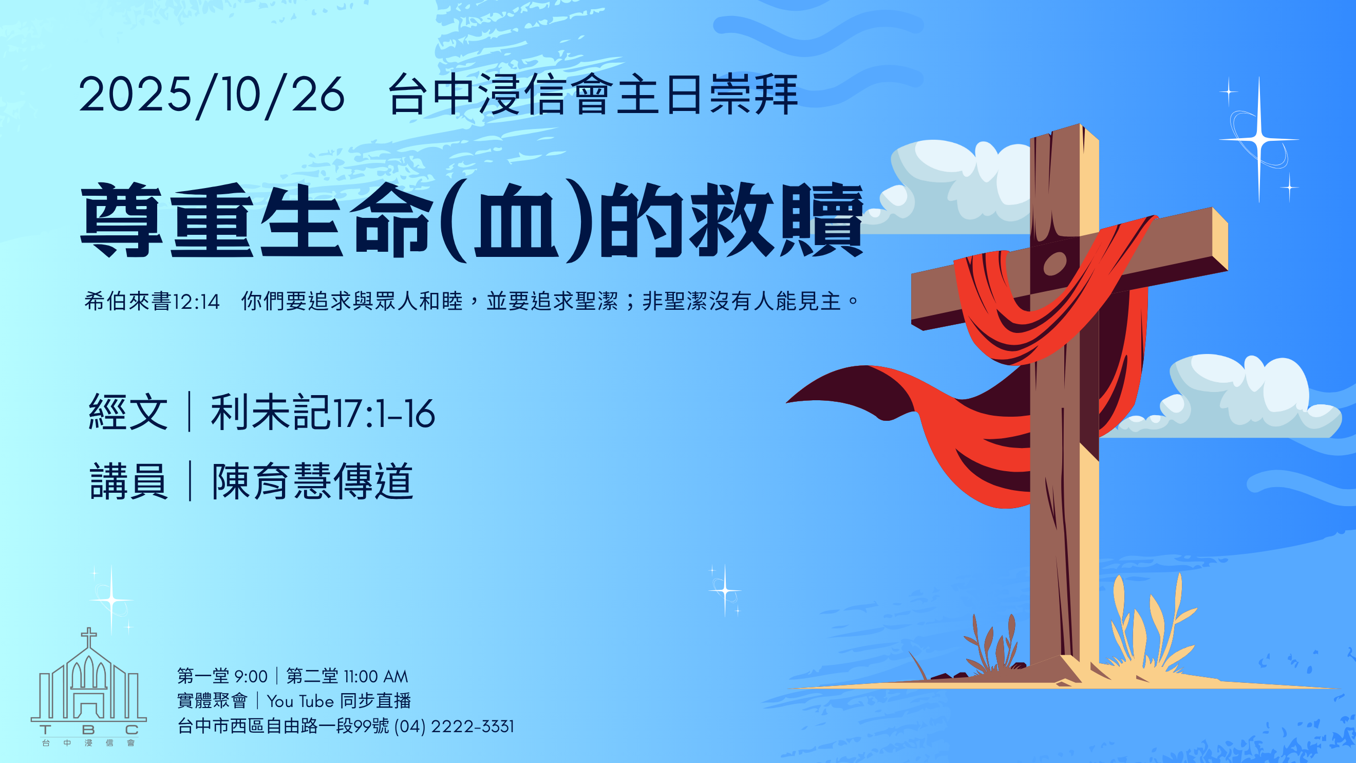 10/26主日崇拜,由本會陳育慧傳道證道。