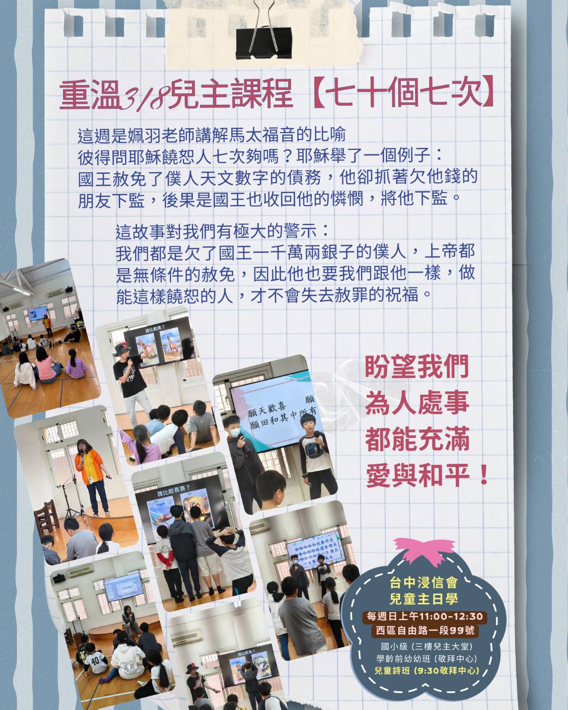 台中浸信會兒童主日學校FACEBOOK